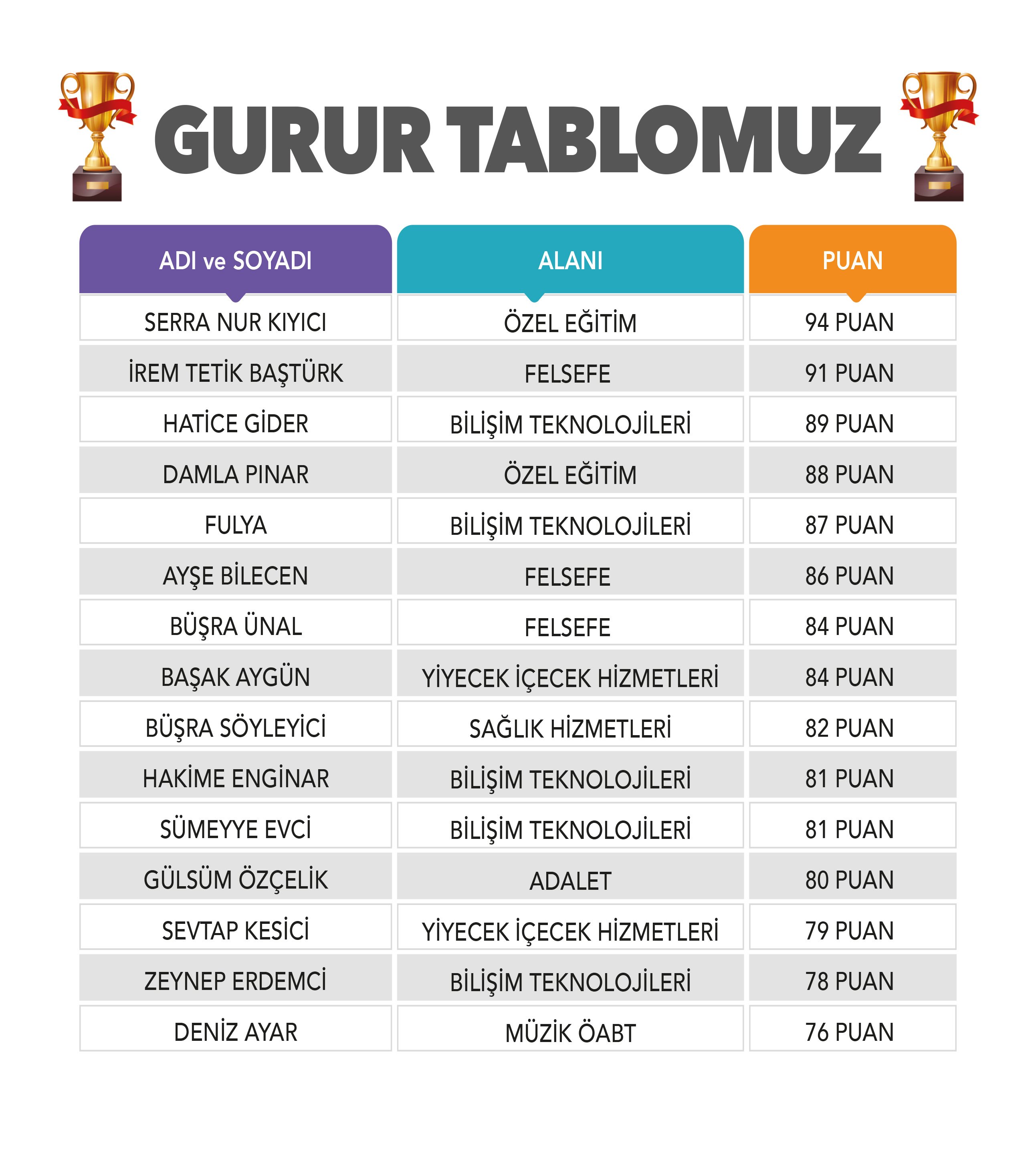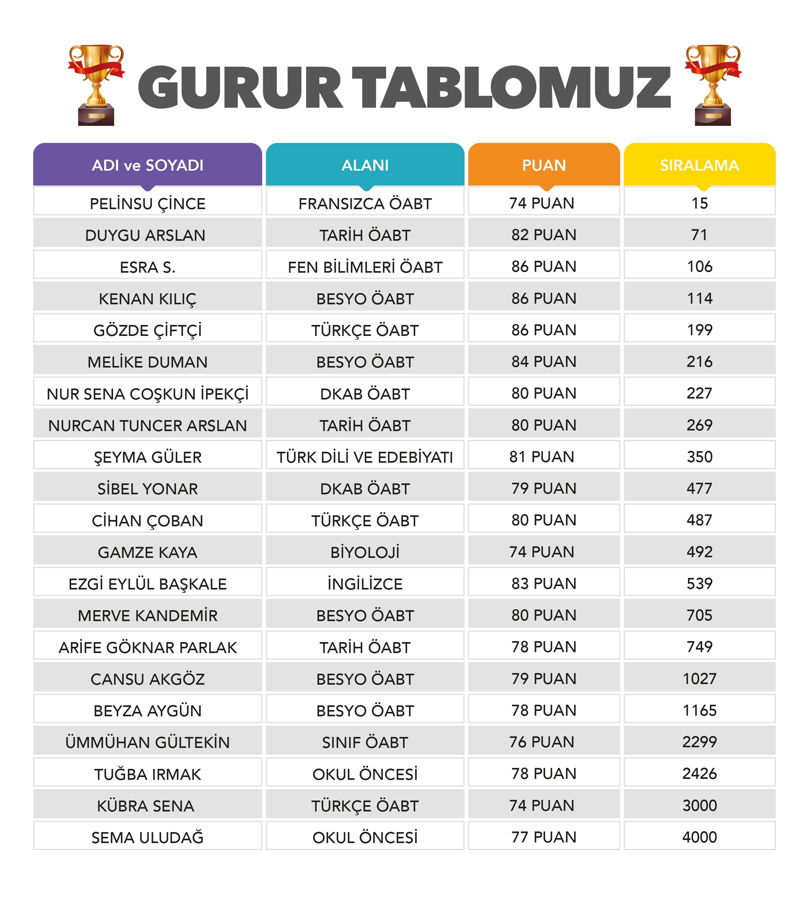 Eğitim UZEM ailesi olarak bu zorlu sınav sürecinde derece yapan kursiyerlerimizi tebrik ediyoruz.