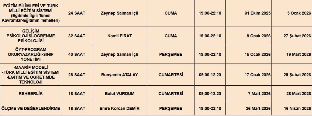Eğitim Bilimleri ve (Eğitimin Tarihi,Felsefi,Toplumsal,Ekonomik ve Politik Temelleri - Eğitim ve Öğretim Teknolojileri - Türk Eğitim Sisteminin Genel Yapısı - Öğretim Yöntem ve Teknikleri - Sınıf Yönetimi) Zeynep SALMAN İÇLİ Kamil FIRAT (Öğrenme Psikolojisi - Gelişim Psikolojisi) Bulut VURDUM (Rehberlik )